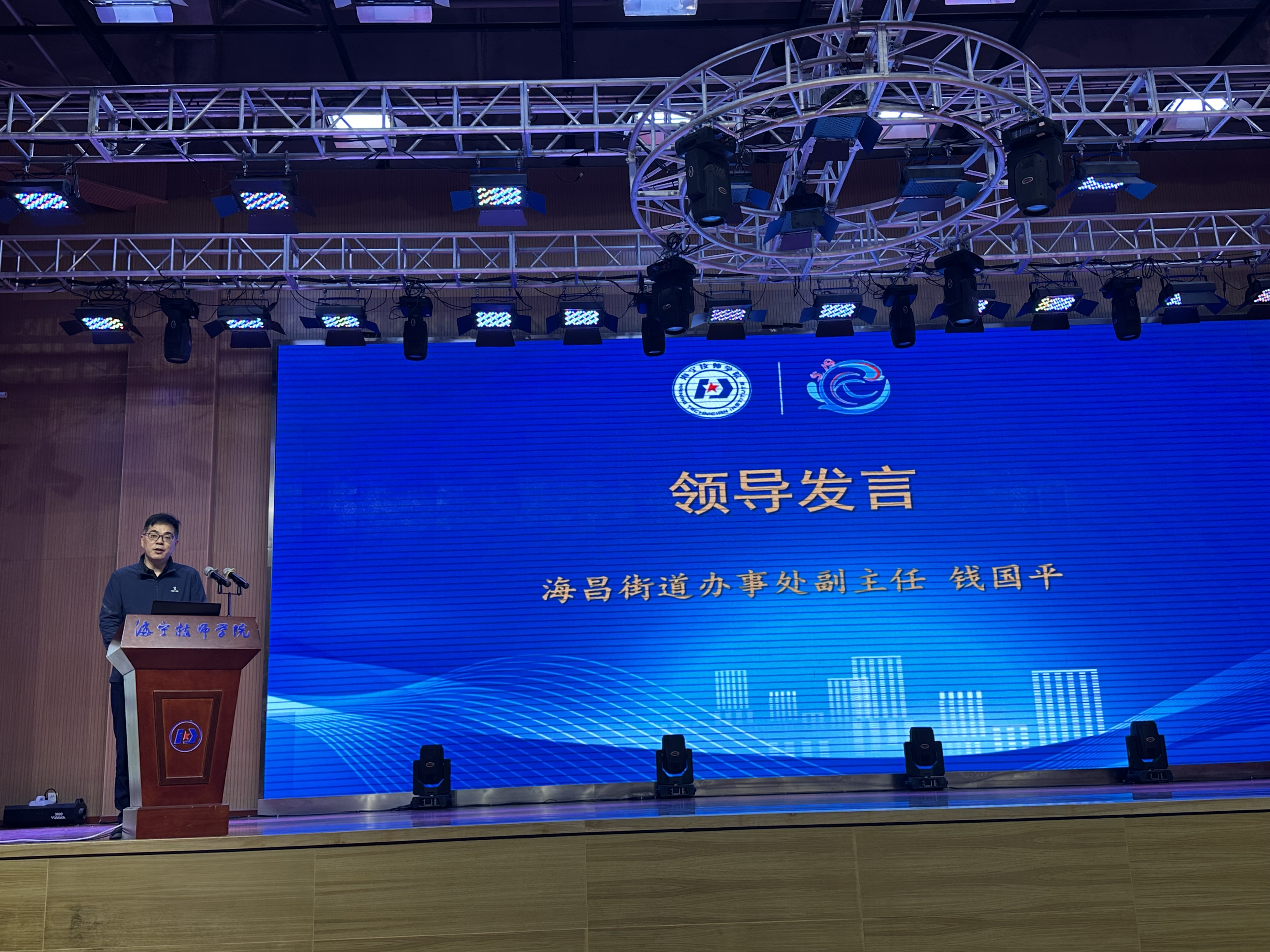 活動的高潮部分,海昌街道辦事處副主任錢國平發(fā)表了講話。他對學院在職業(yè)教育領域取得的成就表示贊賞,并希望未來能夠繼續(xù)加強政校企行合作,共同推動區(qū)域經(jīng)濟發(fā)展。