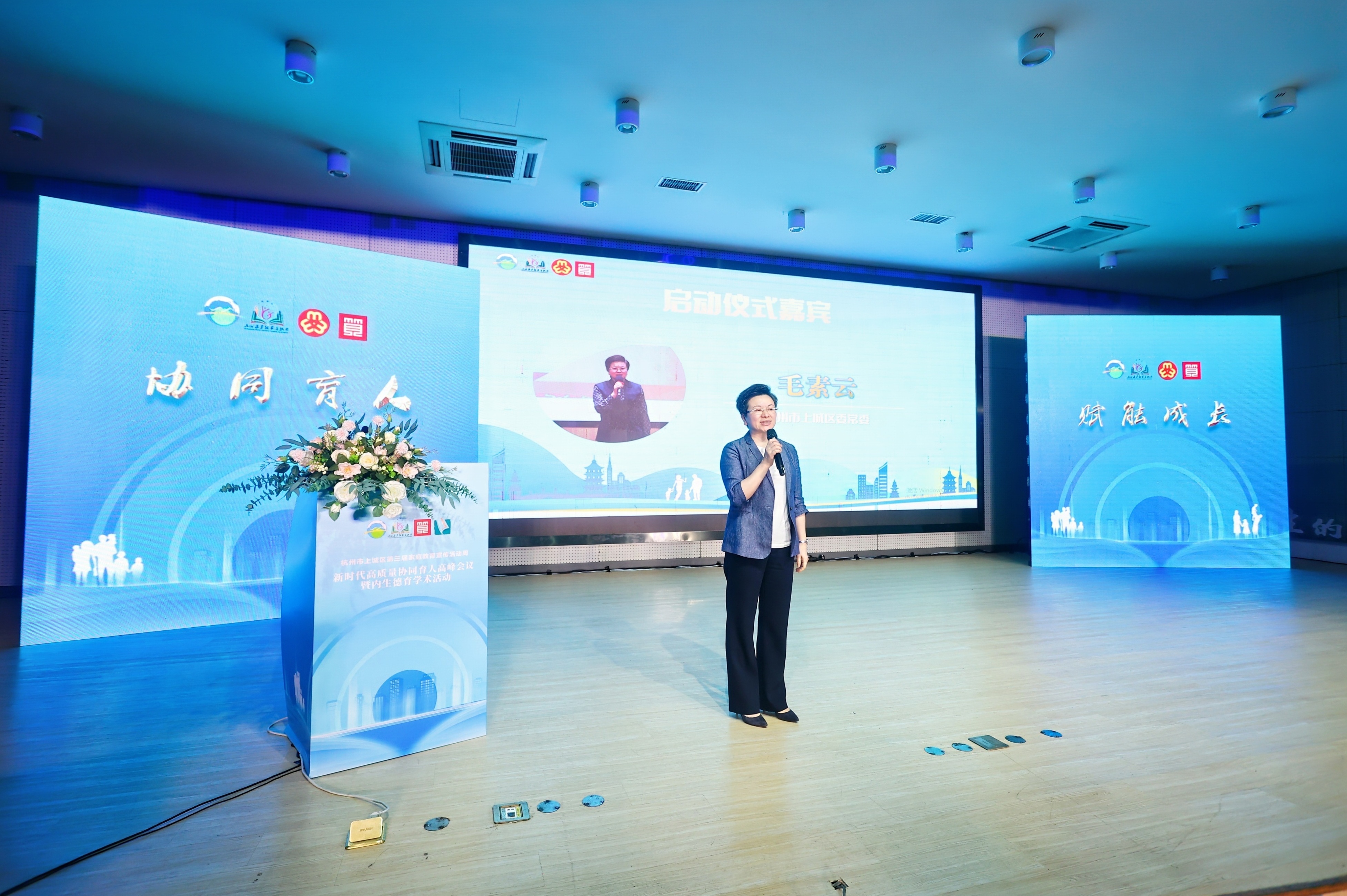 毛素云宣布上城區(qū)第三屆家庭教育宣傳周暨高質(zhì)量協(xié)同育人高峰會(huì)議正式啟動(dòng),拉開(kāi)第三屆家庭教育宣傳周系列活動(dòng)序幕。