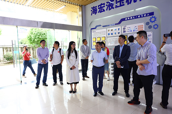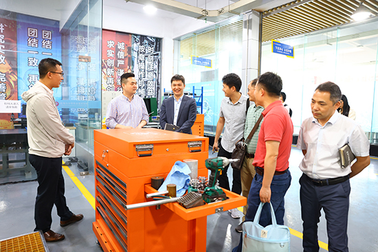 會后,在許月桂的帶領下,各項目負責人陪同來訪的客人們先后參觀了學校的實訓場地、靈匠培育中心等,詳細了解學校的專業教學實踐環境,進一步展示了“雙高”整體建設情況。