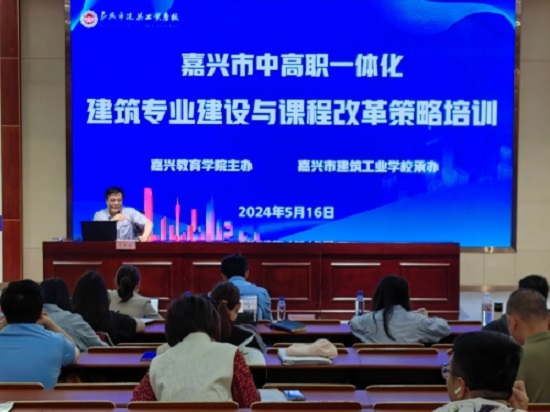 與時俱進(jìn)以研促教,立足專業(yè)凸顯特色。5月16日,嘉興市建筑類專業(yè)中高職一體化專業(yè)建設(shè)與課程改革策略培訓(xùn)在嘉興市建筑工業(yè)學(xué)校鼎建大講堂舉行,嘉興教育學(xué)院建筑教研員范家柱、嘉興職業(yè)技術(shù)學(xué)院城市建設(shè)學(xué)院院長谷偉、嘉興南洋職業(yè)技術(shù)學(xué)院船舶與建筑學(xué)院副院長吳雁、嘉興市建筑工業(yè)學(xué)校副校長葛魁,為來自嘉興市建筑工業(yè)學(xué)校、嘉興市秀水中等專業(yè)學(xué)校和桐鄉(xiāng)技師學(xué)院參與培訓(xùn)的64位教師,分別做了專題講座或是經(jīng)驗分享。
