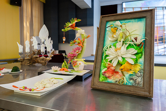 烹飪專業現場給大家演示了“用心烹飪,傳達美味”美食制作。在同學們的巧手下,一道道美味佳肴被擺上展臺,令人垂涎。