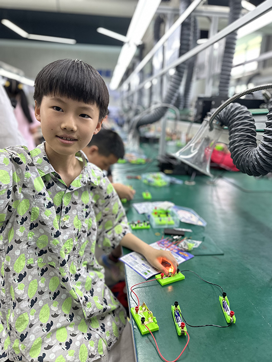 除了參觀沈鴻紀念館,本次研學活動還特別安排了一堂電學體驗課。在海寧技師學院胡雙雙老師、崔啟威老師的指導下,同學們學習了基礎電路知識,還親手搭建了不同類型的電路。在動手實踐的過程中,同學們不僅提高了自己的動手能力和科學素養,更深刻體會到了科學知識的魅力和工匠精神的內涵。