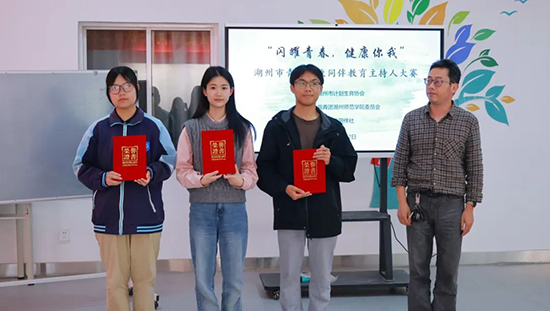 在此次大賽之前,學校青春健康同伴社舉辦了一次主持人選拔賽。選拔賽遵循“自主報名、自主選題”的原則,經過前期的宣傳、報名、選題、備課、選拔等環節,共有7名同學參加選拔活動,全體社團伙伴參與,由崔明敏老師和徐玉老師指導,最終選拔出2名優秀主持人,代表學校與來自湖州地區的其他大中專院校優秀主持人切磋角逐。