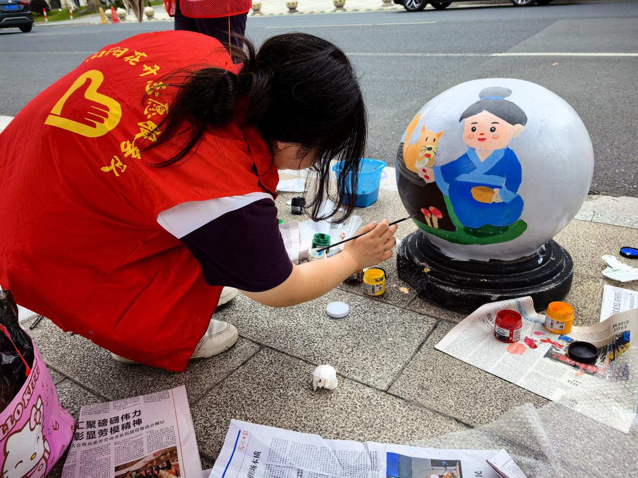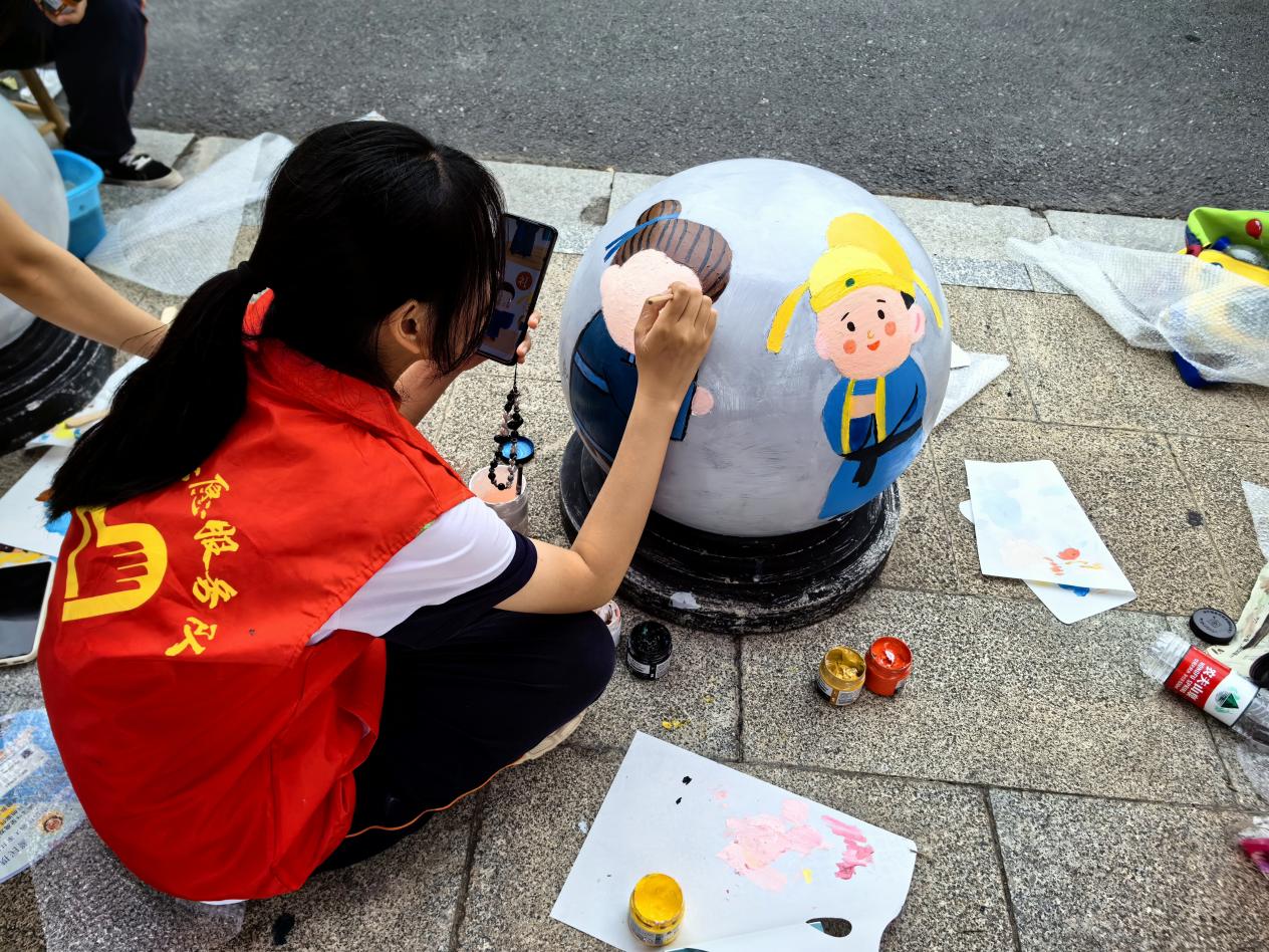 在學前教育專業部團總支書記邵秋辰和專業教師沈思齊的指導下,16名志愿者用畫筆裝點石墩,勾勒出“仁義禮智信 勇恥廉孝忠”相對應的鮮活形象,生動地傳播著中國傳統文化。周圍居民們看到后都忍不住駐足觀賞、拍照留念,贊嘆學生的優秀繪畫技巧,并紛紛表示此次活動意義深遠。