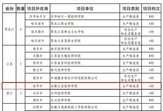 5月13日,人力資源和社會保障部辦公廳、財政部辦公廳聯合發文,公布了2023年國家級高技能人才培訓基地項目建設單位名單。浙江省僅有3家單位入選,其中永康五金技師學院獲批生產制造類A檔,成為金華市唯一上榜單位。