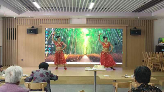 《歌伴舞:前門情思大碗茶》,具有濃郁的老北京風情,以優美動聽的旋律,婀娜動人的舞姿,讓在座的老年人樂開懷。《越劇:金玉良緣》,是老年人的最愛,這唱詞太熟悉,百聽不厭。當演員“林妹妹,你身子好了沒有 ……”一出口,臺下馬上有人附和,不同聲音互相應和。盡管腔調不同,唱腔缺少純正、圓潤,但是內容一致,與臺上融成一體,臺上臺下其樂融融。歌曲、舞蹈一個接一個上,盡管不是專業演出,也不是專門的舞臺,設施設備也相當簡陋,但演員們的表演是真誠的,把自己最好的一面展現出來,老人們對演出的一個個節目都很喜歡,報以熱烈的掌聲。
