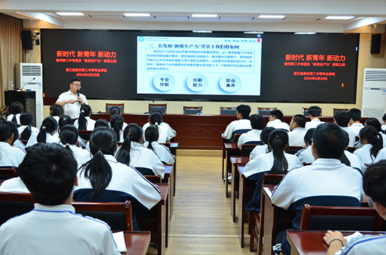 “我認為新質生產力是一種非常先進、高效、高質量的生產方式。”“在我看來,新質生產力就是那些能推動我們社會快速發展,讓我們的生活變得更加方便、高效的新技術和新方法。”5月29日晚,衢州第二中等專業學校崇業樓報告廳內,一場校長與學子之間關于新質生產力的深度交流正在精彩地上演著,學校黨委書記、校長徐凌志給全體團員帶來一堂別開生面的思政課,與同學們一起開啟了一段“新時代·新青年·新動力”為主題的新質生產力探索之旅。