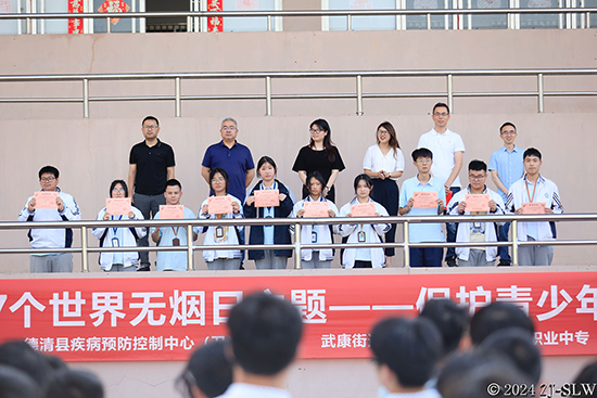 2024年5月31日是第37個世界無煙日。為提高青少年對煙草危害的認識,倡導無煙生活,拒吸第一支煙,切實保障廣大青少年學生的身心健康,5月29日下午,德清職業中專和德清縣衛生健康局、德清縣疾病預防控制中心、武康街道辦事處社管辦、武康街道社區衛生服務中心聯合舉辦了以“保護青少年免受煙草危害”為主題的世界無煙日宣傳教育活動。活動由學校政教處處長馬紀孝主持。