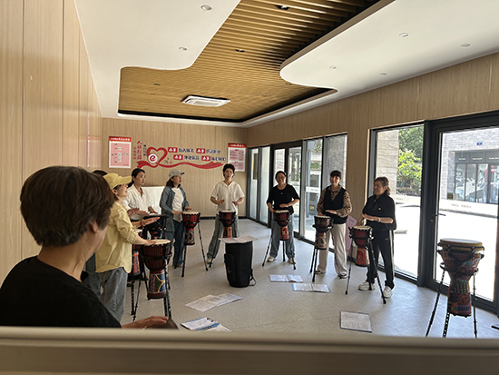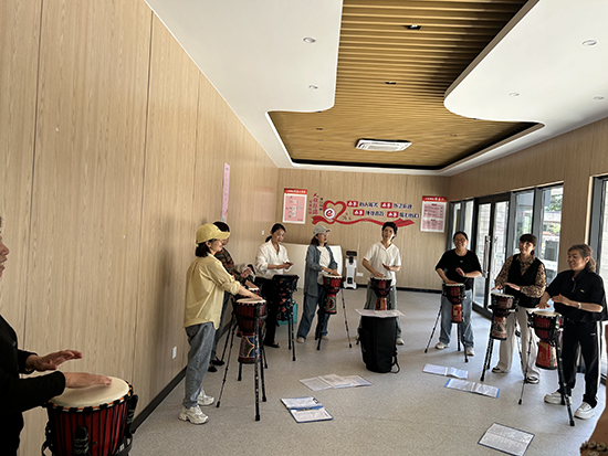 課堂上,張玉英老師首先介紹了非洲鼓的起源和發展歷程,讓學員們對這一古老樂器有了初步的了解。隨后,她詳細講解了非洲鼓的演奏技巧,包括基本的敲擊方法、節奏模式和音色變化等。在張玉英老師的耐心指導下,學員們逐漸掌握了非洲鼓的演奏要領,并能夠獨立完成簡單的曲目演奏。
