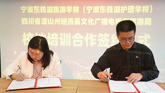 開(kāi)班儀式上,正在越西支教的寧波東錢湖旅游學(xué)校副校長(zhǎng)金立峰與越西縣文廣旅局黨組書記、局長(zhǎng)周芙蓉簽訂了校地培訓(xùn)合作框架協(xié)議,校地建立常態(tài)化文旅人才培訓(xùn)協(xié)作關(guān)系,唱響“甬涼一家親,共筑山海情”奏章。越西縣市場(chǎng)監(jiān)督管理局副局長(zhǎng)王懷穎,越西縣文昌故里景區(qū)管理局副局長(zhǎng)田玉華以及寧波東錢湖旅游學(xué)校培訓(xùn)處主任盧昌松等出席儀式。