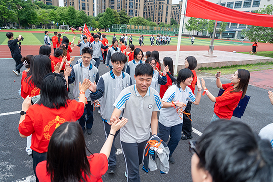 高懸的“粽子”、老師們組成的列隊通道、通往“金榜題名”的大門,迎接著每位高三學子。學生們頂高“粽”,與老師們擊掌祈福,師生臉上都洋溢著幸福的笑容。祝福所有的高三學子一舉高“粽”、頂“粽”!