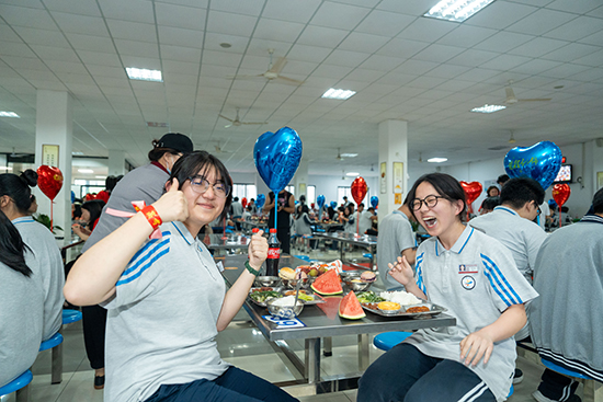傍晚時分,學校食堂三樓燈火通明、人聲鼎沸,學校領(lǐng)導與全體高三師生齊聚一堂,一起愉悅地享用學校為高考學子準備的豐盛晚宴。學校總務(wù)處為高考學子特制了品類豐富、味道鮮美的“高考菜單”,高三年級組特地為大家準備了背景音樂,讓同學們在輕柔的音樂聲中用晚餐。溫馨和美,其樂融融,學生臉上洋溢的笑容是對活動效果最好的表達。