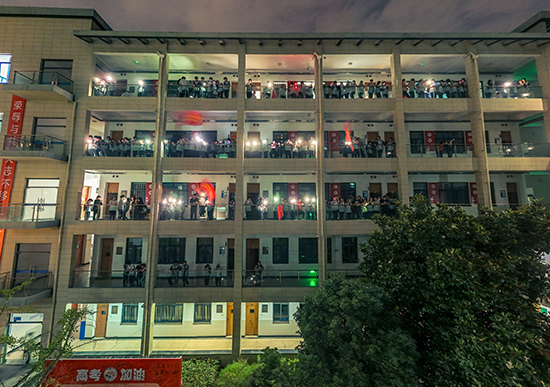 全體同學在《晴天》《逆戰(zhàn)》《隱形的翅膀》《海闊天空》《我們的明天》《星辰大海》等勵志歌曲的歌聲中,放松心情,激勵自我。
