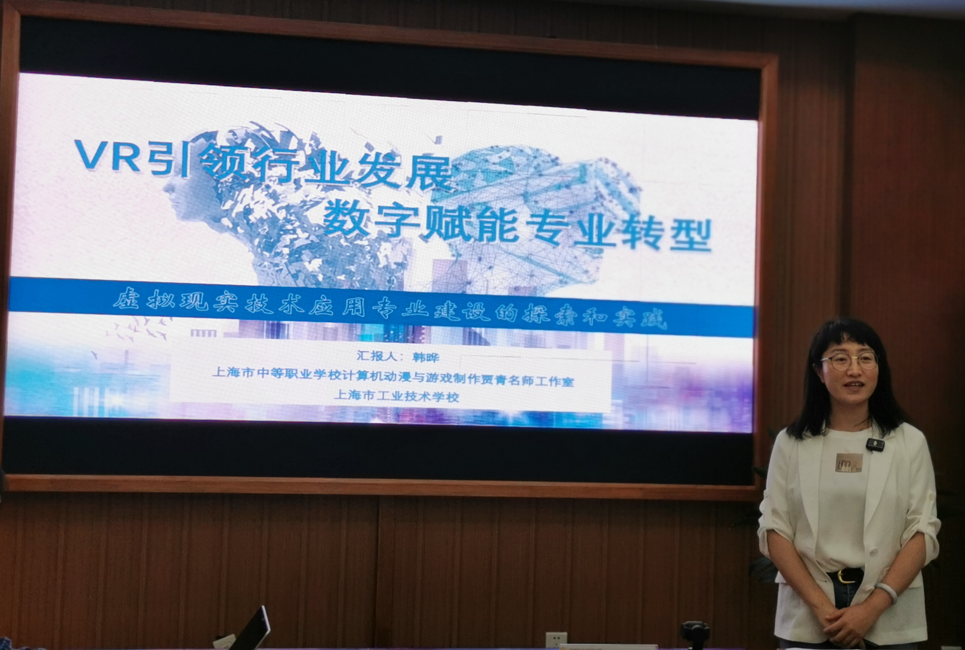 上海市工業技術學校的韓曄老師帶來了《VR引領行業發展,數字賦能專業轉型》的精彩分享。她闡述了虛擬現實技術在專業建設與發展中的應用,包括中高貫通的教育模式、校企共育的合作機制、技能精進的教學策略以及資源優化共享的實踐案例。