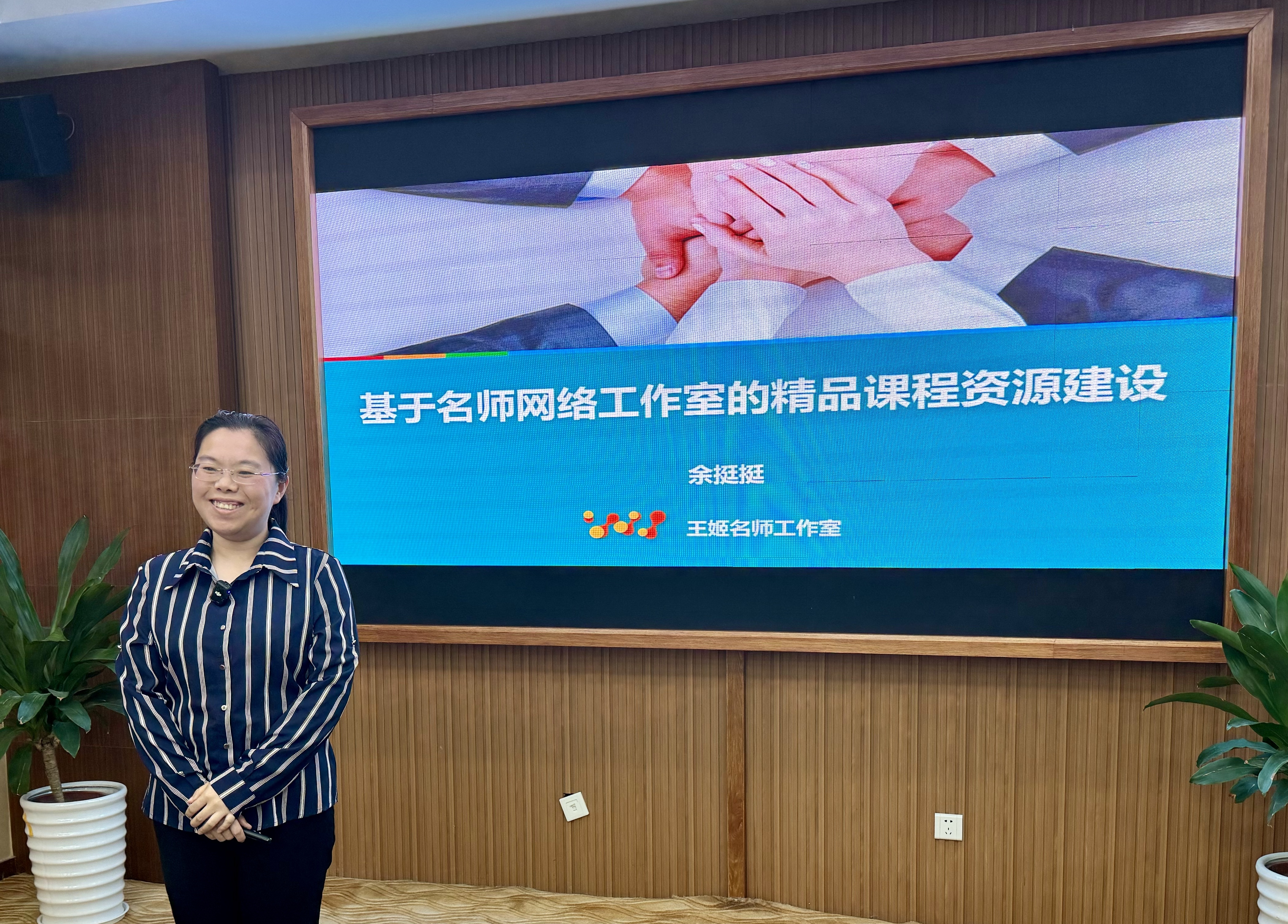王姬名師工作室的學科帶頭人余挺挺老師的《基于名師網絡工作室的精品課程資源建設》主題分享,為與會者提供了網絡教學資源建設的實用指南。她結合自己的成功與失敗經驗,指出了在線課程資源開發的關鍵要素和政策指南,為提高網絡教學質量提供了寶貴的參考。