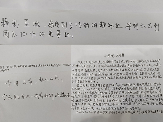每一個挑戰(zhàn)都鍛煉了同學(xué)們的協(xié)作能力,每一次分享都讓我們更加了解內(nèi)心的聲音。讓我們帶著這份收獲,繼續(xù)前行,用更加開放的心態(tài)去迎接未來的每一次挑戰(zhàn),攜手共創(chuàng)更加美好的明天!(王滉)