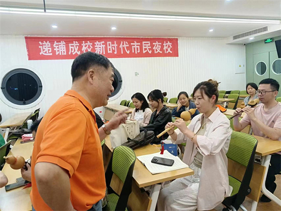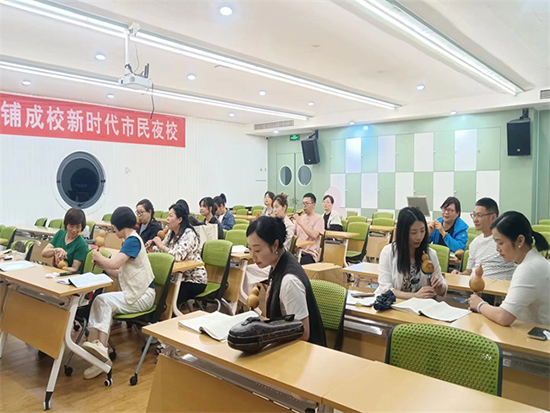 6月5日晚,安吉縣社區(qū)教育學院遞鋪分院新時代市民夜校葫蘆絲班開班授課,邀請許政平老師授課,來自遞鋪街道各個村、社區(qū)的20余名學員參加培訓。