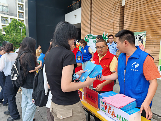 該活動面向全體浙科大安吉校區師生,開始時間選擇安排在大學上午課程結束以后。下課后,師生陸續到來,先請大家在端午主題展板處拍照打卡“包緊米粽子,捂緊錢袋子”的反詐宣傳,發送朋友圈集贊(10個)以獲得端午游戲資格;然后依次進行端午“釣粽子”“好運投壺”“射五毒”“驚喜盲盒”等游戲,贏得端午小禮品,與此同時,各部門將垃圾分類、金融知識、人力資源調查、禁毒知識、應急救護、生態文明理念宣傳等內容向師生進行宣傳;最后,與全體工作人員在活動展板前合影留念。