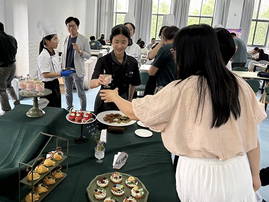 活動現(xiàn)場,品種繁多、各具特色的西點作品吸引了不少教師前來拍照及品嘗。中西面點專業(yè)的同學(xué)們積極分享西點制作的相關(guān)知識,得到了廣大教師的一致好評。