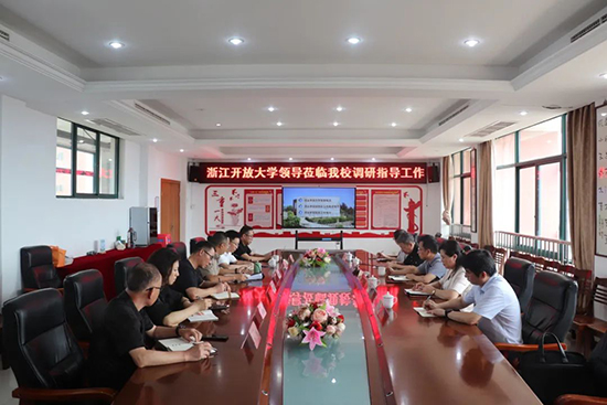 6月13日上午,浙江省開放大學校長王正東、副校長應悅、辦公室主任鄭煒、招生與合作處處長陳國寶,溫州開放大學校長王曉康、黨政辦主任曹小春蒞臨浙江開放大學洞頭學院調研指導。