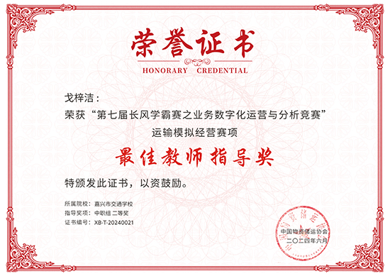 為培養“創新型、復合型、學科交叉型”數字人才,發揮數字人才支撐數字經濟的基礎性作用,加快推動形成新質生產力,為高質量發展賦能蓄力,嘉興市交通學校學生積極參加第七屆長風網學霸賽——運輸模擬賽項,與全國各大院校參賽選手展開了一場云端較量。歷經從校園賽到積分賽,最終,學校由戈梓潔老師帶領的小熊快跑團隊(21物流1班張家樂,22市場營銷胡宇軒,熊俊杰)和葉麗娜老師帶領的武財神團隊(21物流1班李雨川,靳翱翔,潘偉翔)兩支隊伍打進6月16日的總決賽,并分別喜獲全國二等獎,兩位老師也獲得最佳指導老師獎。