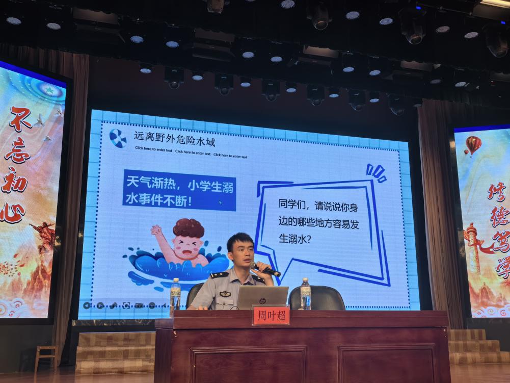 周警長以法為禮,以例為鑒,用真實案例警醒學生,以提高學生防溺水的安全意識;從溺水防范的專業角度,就如何避免溺水事件發生給出了專業指導,講授了“如何避險”“如何自救”“如何施救”的專業知識。他強調,作為一名中學生,要時刻繃緊安全這根弦,堅決做到防溺水“六不”。