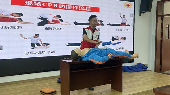 此次培訓中,紅十字講師巧妙地結合案例講解、示范操作和現場演練,全面地為學員們講解了心肺復蘇、氣道異物梗阻及AED等急救的知識要點,詳細闡述了心肺復蘇緊急救護的基本原則、方法與步驟,耐心展示了心肺復蘇術、氣道異物梗阻急救等實用救護技術。學員們在培訓過程中認真聽講、動手練習,迅速掌握了急救知識的關鍵要點,了解了應急救護知識和心肺復蘇具體操作步驟方法,并增強了自身保護和救助、互救的實踐能力。