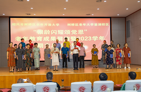 6月28日上午,紹興市柯橋區(qū)老年開放大學(區(qū)老年大學鑒湖校區(qū))“銀齡閃耀頌黨恩”老年教育教學成果展演暨2023學年總結表彰大會在浙江開放大學柯橋學院三樓報告廳圓滿舉行。