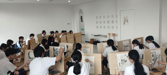 6月28日,坐落在嵊州市長樂鎮水竹村的劉文西美術館落成開館。為感受名家藝術魅力,體會藝術家的崇高品格,提高學生的藝術素養和創作能力,嵊州市職業教育中心組織22創新美術班的30名學生參與美術館開館儀式。