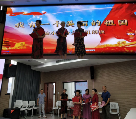 葉珠女常務副會長作簡短致辭后,《祖國!偉大的祖國!》……縣退教協實驗小學分會長尹小梅與7位老師用激情澎湃的朗讀,為大家展現了祖國的壯麗山河與璀璨文明,拉開了慶祝“七一”建黨節朗誦活動的序幕。