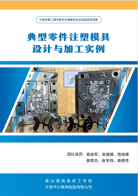 模具設計與制造項目組6位教師在寧波華眾模具制造有限公司頂崗實踐期間,發現行業企業的發展明顯超前于學校教育,且有相對應的企業設計標準,涉及好些技術習慣和工藝流程,為了讓該專業的教學跟上行業企業的“趟兒”,老師們萌生了開發“工作手冊式教材”的念頭,成果轉化階段,在企業師傅的幫助下,《典型零件注塑模具設計與加工實例》成功出爐。
