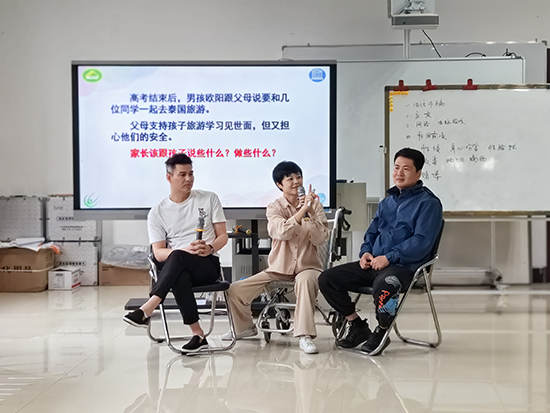 本期“溝通之道”家長培訓的四次課程由富陽區(qū)職教中心專職心理輔導員、富陽區(qū)青春健康教育師資張文竹老師主持。圍繞孩子成長中出現(xiàn)的問題,張老師帶領家長們進行了案例探討、分角色扮演,通過“魚缸式討論”,分享彼此的經(jīng)驗,在交流和體驗中學習如何建立良好的親子關系。在最后一次課程中,孩子和家長共聚一堂,通過“照鏡子”“傾心交談”“學習之路”“告別氣球”等活動,帶領家長回顧了前面所學的知識與技能,幫助家長積極應用在與孩子的溝通當中,也拉近了家長和孩子之間心的距離。孩子們對家長們的學習成果表示滿意,紛紛打上了滿分。