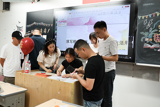 班主任向新生與家長確認信息、發放資料、提醒注意事項。