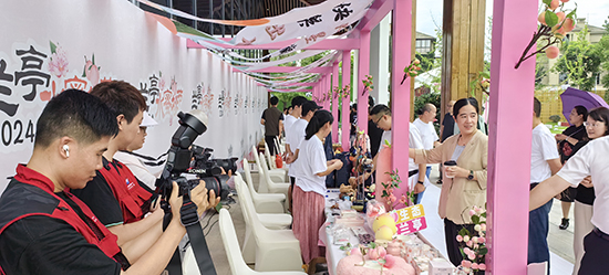 白鷺綠蔭相映襯,甜甜蜜桃正飄香。7月15日上午,柯橋區第五屆蘭亭水蜜桃豐收季活動在謝家塢村啟幕。