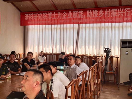 7月30日上午,安吉縣浙科研究院和安吉縣孝源街道成校、科協、總工會、人力社保所、團委聯合開展的“浙科研究院博士為企業賦能,助推鄉村振興行動”在安吉極白白茶有限公司三樓會議室舉行。