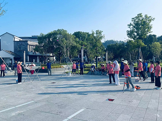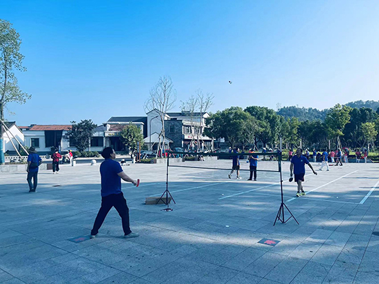 隨后,梅苑村舞蹈隊、新東塢舞蹈隊、老年太極拳隊接連上場展示自己的拿手好戲。楓橋兜球隊的隊員在另外的場地進行兜球表演,兜球投擲看似簡單,卻需要高超的技巧,一位位隊員憑著嫻熟的手勢,看著兜球一個個投入框中,場邊觀眾喝彩不斷。柔力球隊的隊員們則在柔力球場地進行了競技柔力球比賽與陣式柔力球操表演,無論是比賽還是表演,隊員們手中的柔力球與球拍好像馴服似的,比賽時球迅猛、表演時球安靜,給人以很高的觀賞性。嗒嗒球隊的隊員們則表演了嗒嗒球對抗賽,吸引不少人注目觀看,原來嗒嗒球兼具乒乓球與羽毛球的特點,球跟羽毛球的球相似,拍與乒乓球拍類似,在兩位隊員激烈對抗中,觀眾們看出了它獨有的競賽性、趣味性、娛樂性和觀賞性,熟悉了這種新的老年健身活動項目,紛紛對它表示出極大的興趣。整個活動歷時兩個小時,展現了楓橋鎮老年體育的風采。