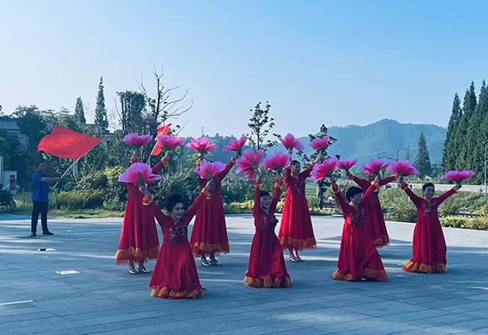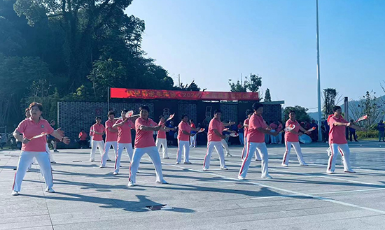 楓之韻藝術團團長駱幼君帶著成員跳起快樂舞步健身操,在動聽的音樂聲中,隊員們身著紅白相間的運動裝、做著整齊劃一的動作、隨著樂曲的節拍,展示矯健的身姿,贏得在場人員紛紛鼓掌,掀起了活動熱鬧的氛圍;海角社區舞蹈隊表演了《手拿碟兒敲起來》的舞蹈,6名舞者身著民族服飾,手把團扇合著音樂的節拍翩翩起舞,另外一名隊員手持二胡、一名隊員手敲碟子,兩人控制著表演的節奏邊拉邊敲,曼妙的舞姿和熟練的演奏融合在一起,觀眾面對熟悉的旋律不時哼唱起來。