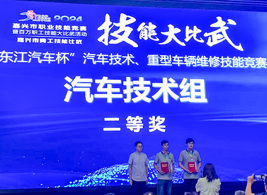 經過專業理論和專業技能兩個競賽內容的綜合比拼,最終,張悅獲得汽車技術賽項二等獎(第二名),呂宇倫獲得重型車輛維修技能賽項三等獎。同時,榮獲嘉興市職業技能競賽暨百萬職工技能比武活動“東江汽車杯”汽車技術技能競賽團體一等獎,重型車輛維修技能競賽團體二等獎。