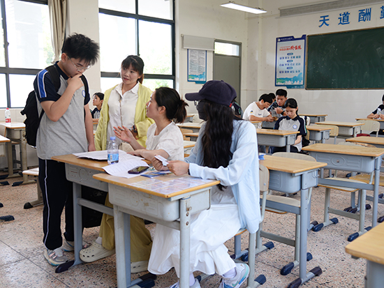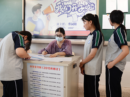 教室內,班主任們忙碌的身影,他們或指導填表、或解答疑惑,以高度的責任心,為學子們鋪就一條順暢的入學之路。