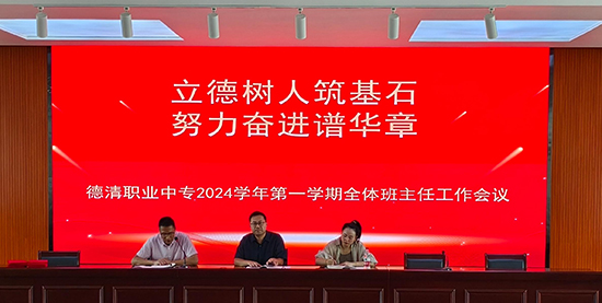 金秋時節(jié)開學季,砥礪前行共奮進。為進一步落實立德樹人根本任務,確保新學期班主任工作有序高效開展,8月27日下午,德清職業(yè)中專召開2024學年第一學期全體班主任工作會議。校黨委委員馬紀孝、各系政教主任以及全校83個班級的班主任參加會議,會議由政教處處長鄧志民主持。