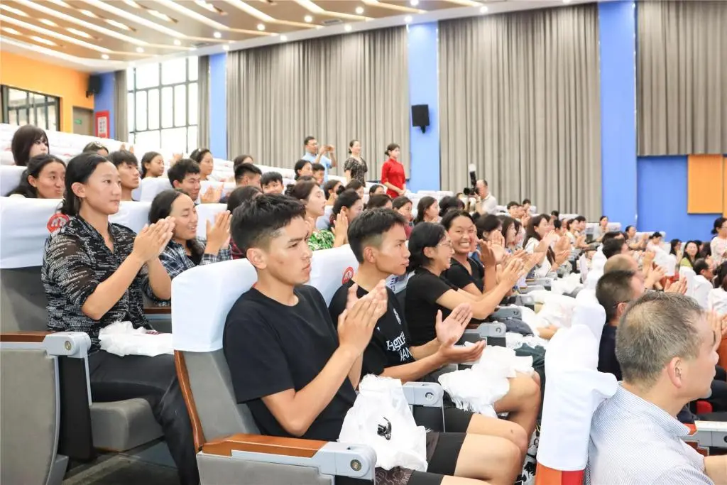 實中附屬幼兒園報告廳內(nèi),浙甘班學(xué)生欣賞了實中學(xué)子帶來的精彩表演,場內(nèi)不時響起熱烈的掌聲?;顒又?,浙甘班的各任課教師向甘孜學(xué)生遞上“親情卡”,上面寫有教師姓名及電話,方便學(xué)生有問題隨時聯(lián)系。甘孜學(xué)生也向?qū)嵵行nI(lǐng)導(dǎo)及任課教師獻上潔白的哈達,傳遞真誠的心意。