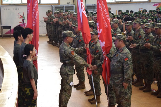 隨后,柯橋區(qū)人武部參謀陳建松同志向五個軍訓(xùn)營營長授旗。本次軍訓(xùn)設(shè)一團(tuán)五營,下設(shè)45個軍訓(xùn)連。陳參謀要求全體教官嚴(yán)格組訓(xùn)、以情帶訓(xùn),并祝愿軍訓(xùn)圓滿成功。