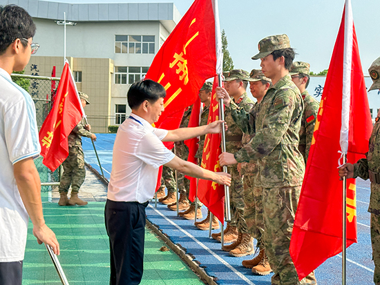 吳曉斌、唐雨濤向各連隊授旗,教官們接過的不僅是一面面火紅的旗幟,更是一份份沉甸甸的責任。