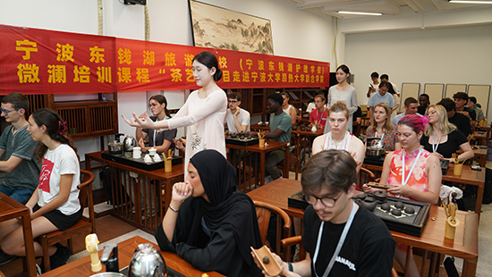 法國昂熱大學是一所具有700年歷史的老牌國立綜合性大學,參加本次培訓的學員正在寧波大學參加夏校交流,“中國茶藝”是他們學習的重要內容。