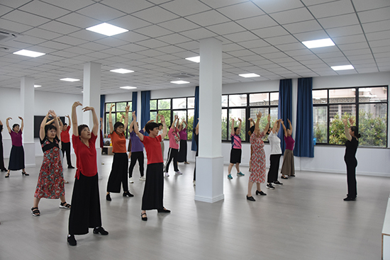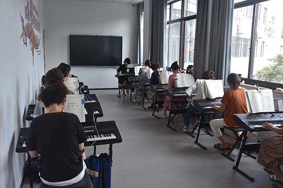 旗袍課,老年學員們伴隨著優美的旋律,展現出優雅的身姿和得體的舉止,自信滿滿;健身舞課,學員們翩翩起舞、活力四射;瑜伽課堂,學員們靜心養氣,通過瑜伽動作舒緩疲憊的心靈,釋放壓抑的情緒;聲樂課堂,學員們引吭高歌、聲情并茂……整個校園充滿了歡聲笑語和濃厚的學習氛圍。