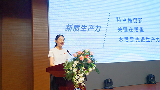 學(xué)校優(yōu)秀青年黨員章馨尹圍繞黨的二十屆三中全會《決定》提出的“健全因地制宜發(fā)展新質(zhì)生產(chǎn)力體制機制”,以《追尋職業(yè)教育向“新”力的三朵浪花》為題,作主題宣講。她通過本地院校創(chuàng)設(shè)“專業(yè)+崗位”現(xiàn)代學(xué)徒制人才培養(yǎng)模式、一代又一代職教人追求科研技術(shù)的革新、多校攜手主動融入石化等地方產(chǎn)業(yè)發(fā)展等不同領(lǐng)域不同人物的生動故事和案例,緊緊握住技術(shù)技能人才培養(yǎng)、科技創(chuàng)新、產(chǎn)教融合三朵浪花,在講述職業(yè)教育向“新”力的同時,也生動闡釋了“教育家精神”,激勵大家錨定目標、不忘初心、奮楫篤行。