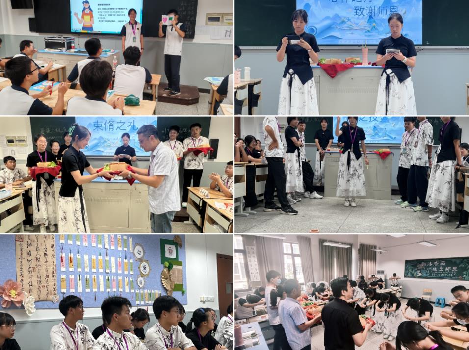 春暉指路,鐫刻光陰,方圓之間,皓月千里。沂水春風(fēng)吹拂著璀璨的文明,程門立雪傳承著尊師的美譽,尊敬師長自古以來都是中華傳統(tǒng)美德之一。在教師節(jié)之際,學(xué)生通過手繪賀卡、主題班會、謝師束脩儀式等方式表達對老師們深深的敬意和謝意。(繆敏敏 胡斯涵)