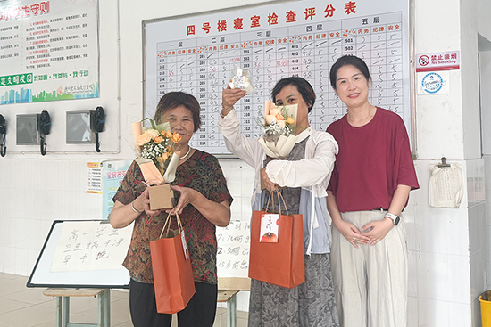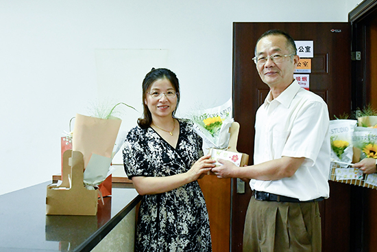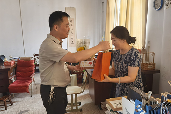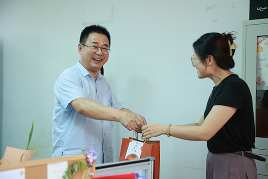 活動中,校領導、校工會委員和各分工會干部分組來到教學樓、實訓室、體育館、行政樓和食堂的每一間辦公室,將鮮花和暖心節日禮物送至每一位教師、職工和后勤人員手中。“您辛苦了,感謝您!”“祝您教師節快樂!”一句句暖心的祝福正如一股股清泉感動著每一位教職工的心間;“校長好!”“也祝您節日快樂!”一聲聲熱情洋溢的回應激起一陣陣歡聲笑語,大家互送祝福,共同慶祝屬于自己的節日。