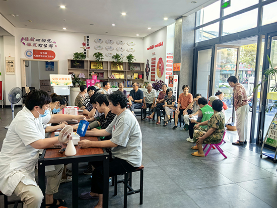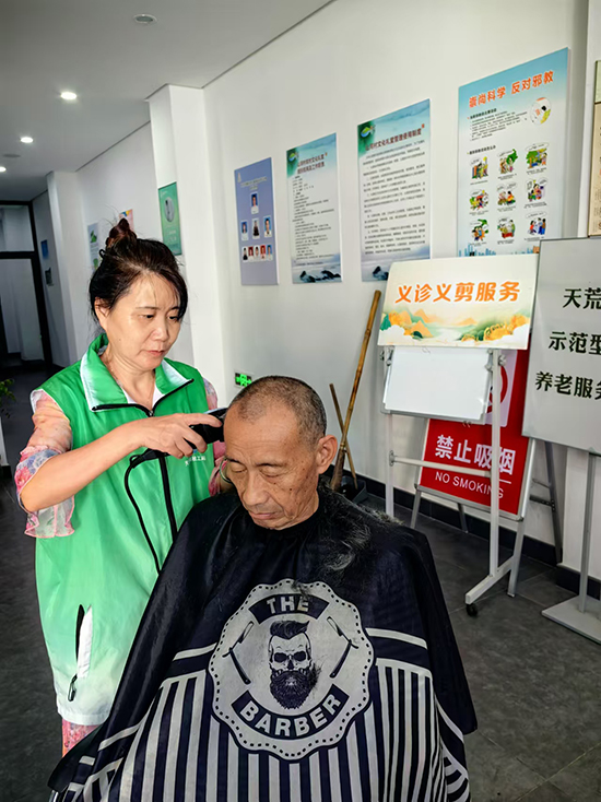 活動現場,義診醫生為前來就診的村民提供免費量血壓、測血糖檢測等,并耐心解答健康咨詢問題,從飲食、運動、用藥的注意事項等方面給予合理建議。來自復大口腔的牙醫從牙齒保護等方面入手,為大家帶來專業的牙科知識講解,耐心細致解答群眾問題,指導大家如何保護牙齒、預防口腔疾病。幸福鄰里的志愿者們還為社區老年人提供免費義剪服務,志愿者先對理發工具進行消毒,然后,將一張圍布披在“顧客”的肩膀上。在一梳一剪、一洗一吹之間,原本蓬亂的頭發變得整潔利落。