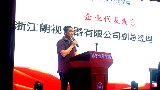 企業代表浙江朗視儀器有限公司副總經理陳家桃以“回饋社會、支持教育”的初心為起點,期待與學校加強合作,共同探索校企合作的新模式、新路徑,同時鼓舞海技學子珍惜在校時光,努力學習專業知識,提升綜合素質,為將來走上社會、服務國家打下堅實基礎。